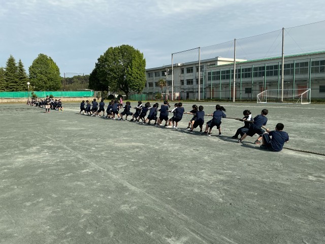 心地よい風が吹く中、体育祭に向けて練習をしていました。学級の仲間と力を合わせて、取り組んでいました。
