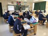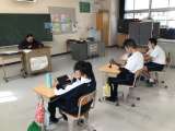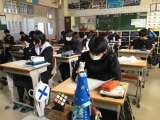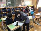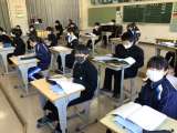 雪が降っています。気をつけて登校してください。