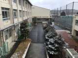 朝から雪が降っています。1時間ほどで、正門周辺にはうっすらと積もっています。登...