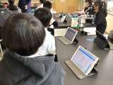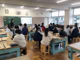 総合的な学習の時間の様子です。2年生が職場体験学習のまとめを作成し、来年体験す...
