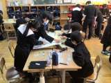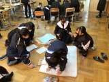 1年生は服のチカラプロジェクトのまとめをしています。グループで感想や工夫したこと...