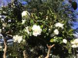 正門横の椿です。きれいな白色の花を咲かせています。となりのもみじとのコントラス...
