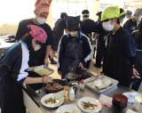 2年生の家庭科の授業の様子です。栄養教諭も授業に参加して調理実習をしていました。