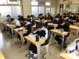 3年生の学習診断テストの英語科の様子です。英語科のテストは、聞き取り検査と筆記...