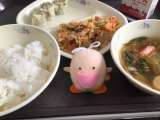 今日の給食の献立は、「たべまるのおすすめ献立」です。キムチチャーハンです。キム...