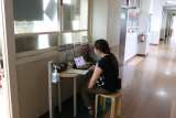学習用タブレットを使ってのオンライン学習の練習風景です。