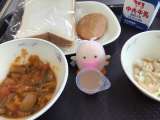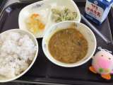 今日の給食の献立は「たべまるのおすすめ献立」です。夏野菜を使ったカレーです。な...