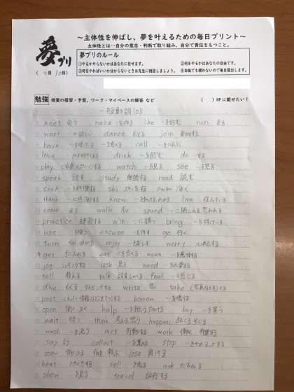 「夢プリ」とは学習を主体的に取り組めるようにするための課題で、提出は毎日するが、取り組む内容や取り組む量は各自が決めます。