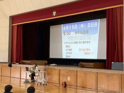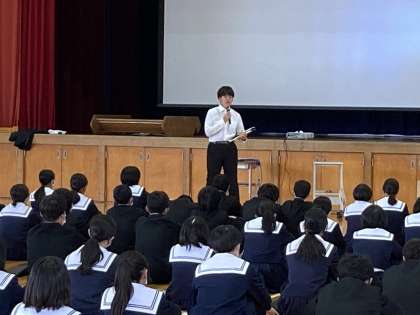 本日5限の総合的な学習の時間に学年集会を行いました。修学旅行と今年度の総合的な学習について担当教師が話をしました。今年度の総合的な学習でも、さらにSDGsについて学ぶことになりました。