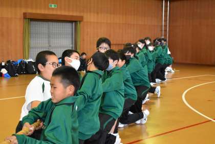 学年レクリエーションでは、綱引きと障害物リレーを行い、勝利を目指して学級の仲間と力を合わせました。