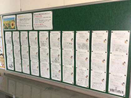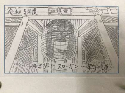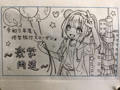 今年度1年生は修学旅行を担当することになりました。各自で工夫を凝らし、気持ちを込めてイラストを描き、素晴らしい作品がたくさん集まったので、学年フロアに掲示しています。
