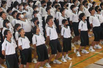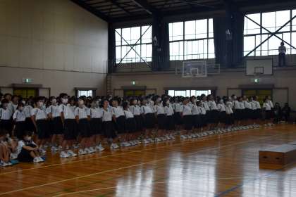 壮行会本番では、今までで一番のエールで、3年生に気持ちを届けることができました。「がんばれ、先輩!」と、体育館中に響き渡るエールは、心にぐっとくるものがありました。