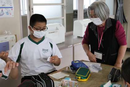 ミシンサポーターの皆様、ありがとうございます。 公開日 2023/10/04 更新日 2023/10/04 地域学校共同本部 地域学校共働本部を通じ、ミシンサポーターを募集したところ、地域から10名のボランティアの皆様が集まっていただけました。ミシンサポーターの皆様には、家庭科の授業で1年生徒のミシン作業の補助をしていただきます。慣れない手つきの生徒を優しくサポートしていただけました。ありがとうございます。