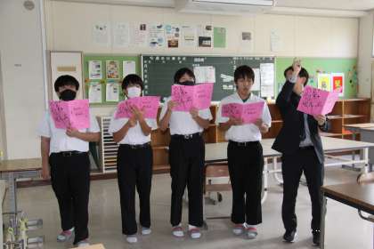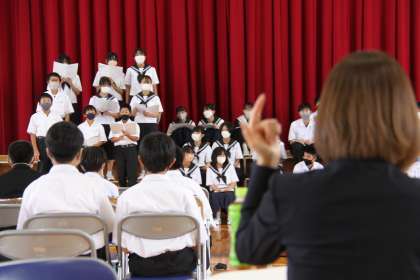 文化祭ウィーク始まる! 公開日 2023/10/16 更新日 2023/10/16 全校生徒 今週末は文化祭です。朝からどのクラスでも合唱練習に力が入っていました。 本日は、学校外から招く審査員の方に中間発表を見てもらい指導を受けました。どの学級も真剣に指導に聞き入り、わずかな時間でしたが成長がみられました。週末が楽しみとなってきました。