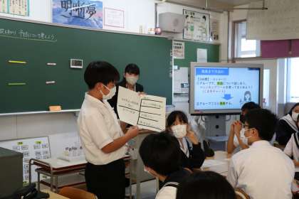健康な生活と病気の予防 公開日 2023/10/17 更新日 2023/10/17 全校生徒 教育実習生の研究授業が行われました。保健体育の保健分野「性感染症」を取り扱う内容でした。性を取り扱うということでしたが、生徒たちは自分事ととらえ真剣に考えていました。実習生も今日の授業で学んだことを大切にして、素敵な教師になってくれることと思います。