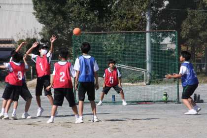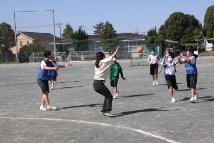 スポーツの秋!(1年生保健体育科) 公開日 2023/10/18 更新日 2024/02/07 全校生徒 天高く馬肥える秋。晴れ渡る秋空の下、生徒たちが掛け合う声が響いています。 1年生の保健体育科では、ハンドボールの授業を行ってます。元気な生徒の声に、学級担任も引き寄せられ、一緒に競技を楽しんでいました。