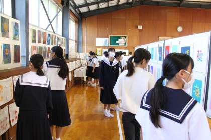 文化祭は終わりましたが、作品鑑賞を朝の時間に行っています。朝から落ち着いた雰囲気の中、芸術に浸っています。