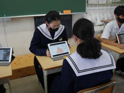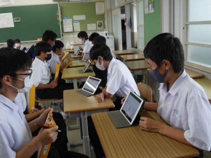 職場体験での学びをパワーポイントにまとめ1年生に向けてプレゼンテーションを行いました。パワーポイントをもとに、アドリブを加えながら生き生きと話をする姿が見られました。「1年生に伝えたい」という思いが溢れる素敵な時間になりました。