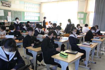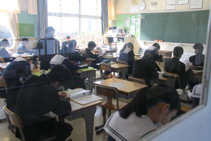 誰もいない廊下 公開日 2023/11/14 更新日 2023/11/14 全校生徒 猿投台中学校の廊下はとても長いです。その廊下に誰もいませんが、これは授業中でなく、休み時間です。 教室をのぞくと週末のテストに向けて教えあうなど勉強をしている生徒の姿がありました。教師に言われるまでもなく、テスト週間の雰囲気を自分たちで作れる素晴らしい生徒たちです。