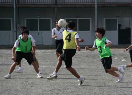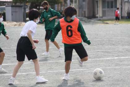 1年生は「キックベース」を。2年生は「サッカー」を行っています。
