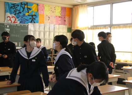 曇った空から青空に(3年生後期中間テスト終了) 公開日 2023/11/20 更新日 2023/11/20 3年生 3年生は今日まで後期中間テストが行われました。 朝は曇り空が広がり冬が迫る気配が強かったのですが、3年生のテスト終了時の晴れやかな表情にに合わせるかのように、青空が見え始めました。 今日までの3日間お疲れ様でした。振り返りをしっかりとして、自分の知識を定着させましょう。