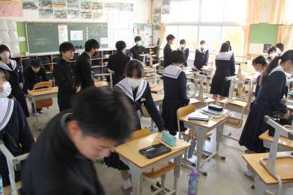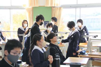 新しい場所は? 公開日 2023/11/21 更新日 2023/11/21 全校生徒 中学生にとって、自分がどこの席になるのかは一大イベント。 テストが終わったタイミングで多くのクラスで席替えが行われています。 隣はだれか?窓際の暖かな席がいい。最前列か〜!と、いろんな思惑が表情から読み取れます。さて、新しい席はいかがですか? 本日も秋らしい青空が校舎の窓から見られます。