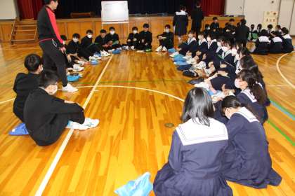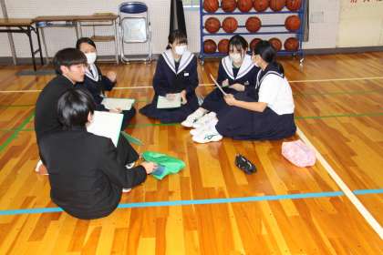 3年生の総合的な学習では、持続可能な開発目標(SDGs)を実現していくためにどんなことができるのかを学んできました。その学びを地域にどんな形で返すことができるだろうと話し合いました。中学校生活も残るところわずか。通学団ごとに、自分たちを育ててくれた地域にどんな形で返せるのか考えていきます。