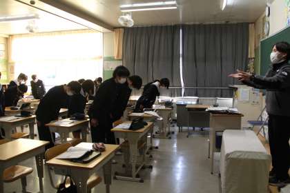 3年生は午後も面接練習を行っていました。部屋の入り方からお辞儀の仕方。正しい言葉遣いで回答することの難しさに苦戦しつつも、自分の未来をつかむために必死さが伝わる時間でした。