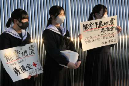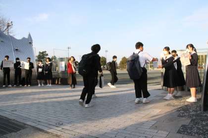 能登半島地震義援金募金 公開日 2024/01/10 更新日 2024/01/10 生徒会 朝の登校時間に生徒会役員と福祉委員が先日起きた能登半島地震の復興に向けた義援金を呼びかけ、募金活動を行いました。中学生の私たちにできることをと、初日から多くの生徒が賛同し募金しました。集まった義援金は日本赤十字社に送る予定です。被災した方に有効に使っていただけたらと思います。被災地の1日も早い復興を願っています。