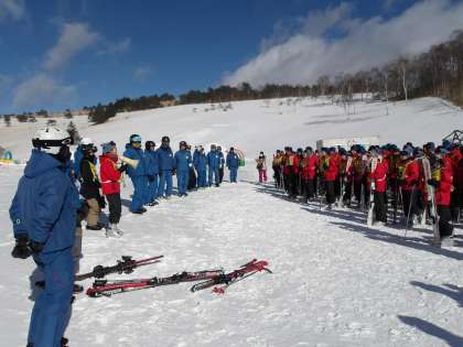 リーダーの「スキー研修頑張るぞー!」のかけ声で研修がスタートしました。
