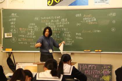 2年教室では社会科の歴史を振り返っていました。それぞれの時代の重要語句を覚えるだけでなく、その時のそれがなぜ起こったのかを以前学習した内容を振り返りながら進めていました。「何だったかな〜」「漢字が思い出せない」「これ今の大河ドラマのことだよね?」と、飛び交う言葉は様々でしたが、その場にいる全員の脳内がアクティブに活動していることが表情にあふれていました。しかし、歴史に強い子っているものですね。答えがポンポン出てました。