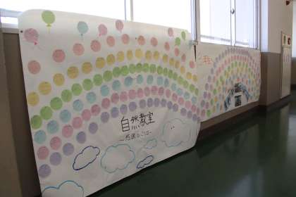 ありがとう【2年生】 公開日 2024/01/26 更新日 2024/01/26 2年生 授業中、養護教諭が座り込んで廊下の掲示物をじっと見つめていました。聞くと、自然教室中に感じた友だちへの感謝の言葉が貼られているとのこと。たくさんの感謝の言葉が参加した全ての生徒に向けられていました。この言葉を見ていると、本当に心が温かくなり、この言葉をかけあう台中生と共に同じ場にいることが嬉しくなりました。