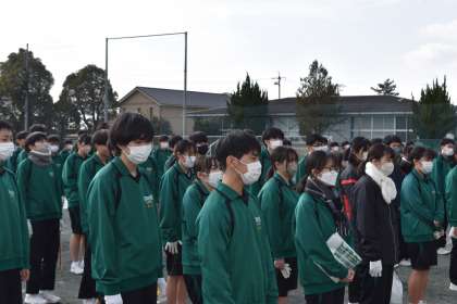 本日、総合的な学習で「ゴミリンピック」を行いました。この企画は、級長会の総合的な学習を担当する生徒の提案により、活動をしました。各通学団に分かれてゴミリンピックをするだけでなく、各地域の区長さんにも協力をしていただきました。