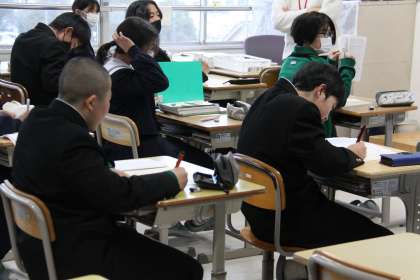 1年生の教室ではキャリア教育の一環で「進路適性検査」を行っていました。中学校での義務教育が終われば、自分の進路を自分で決めて進む力が必要となります。どんなことに自分が向いているのか自分を知ることが大切ですね。