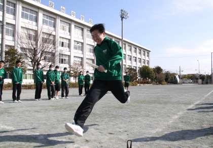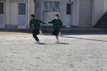 トップでつなげ!【1年生体育科】 公開日 2024/02/09 更新日 2024/02/09 1年生 1年生の体育では陸上競技をおこなっています。今はリレーのバトンパス。スピードを落とさずバトンをつなぐために練習をしています。この単元が終わるまでに何秒縮められるでしょうか?