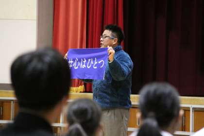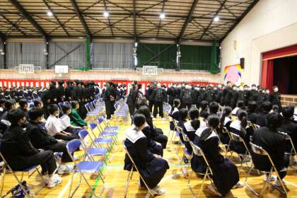 卒業生を送る会【3年生からのありがとう】 公開日 2024/03/01 更新日 2024/03/01 全校生徒 素晴らしい会を作ってくれた在校生に対し、卒業生からの返礼がありました。在籍した学校に誇りをもっていたからこそ、伝統を受け継いでほしい。という思いがあふれていました。学年主任から「ありがとう」の言葉を受けて、卒業する実感を強くしたという言葉がありました。今日の会に携わり、参加した全ての人に「ありがとう」と伝えたいです。