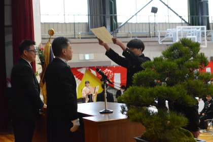 第77回卒業式 公開日 2024/03/06 更新日 2024/03/06 全校生徒 第77回卒業式が無事執り行われました。時折降る雨が心配されましたが、162名の卒業生を送り出すことができました。台中で学んだことを誇りに、未来に羽ばたいていきましょう!