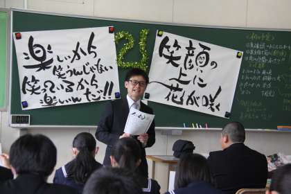 担任の個性あふれる学級開きが行われていました。