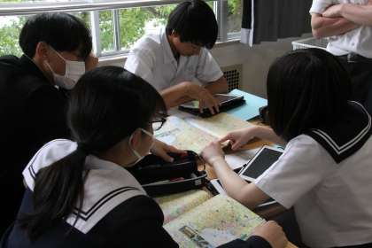 首都に夢見て【3年生修学旅行】 公開日 2024/05/22 更新日 2024/05/22 3年生 体育祭が終わり一段落。と、思いきや、すぐに修学旅行の準備です!忙しいはずですが、生徒の表情は首都東京を夢見て楽しそうです。地図や路線図、インターネットサイトを検索する目がにこやかです。何度も行っている東京ですが、行くたびに成長を感じる都市です。生徒たちは何を発見してくるのでしょうか?テーマは「新発見」です!