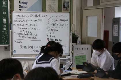3年生の修学旅行。今年は班別活動を行います。生徒たちは行きたい場所をみんなで出し合い、行き方を探り、班で学習用タブレットに共同作業でまとめていました。生徒の思い描く首都東京のイメージを聞いていると、こちらもワクワクとしてきます。生徒のイメージをはるかに凌駕する首都東京で何を発見してくるのでしょうか?