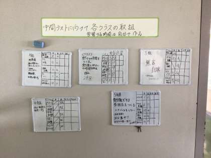 各クラス、テストに向けての取り組みを頑張ってきました。その成果が発揮できるよう、最後の最後まで頑張ってくださいね!