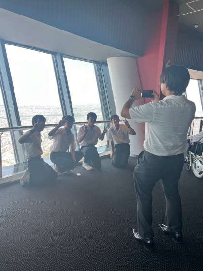 高さに驚きながらもみんなの笑顔も満開です