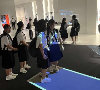 4組は学校別研修でオリンピックミュージアムにきています。体験型のアトラクションもあり、みんな楽しそうです。