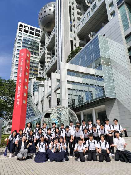 1組は、お台場フジテレビに来ています。いつも、テレビの中で見ている景色を目の当たりにして、とても楽しんでいます。