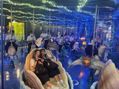 【修学旅行】学級別研修2組 公開日 2024/06/11 更新日 2024/06/11 3年生 2組の学級別研修2箇所目は「アクアパーク品川」です。朝の緊張もほぐれ、大きく羽を伸ばして楽しんでいます。童心にかえって、学級のみんなで笑い合う姿が素敵です。