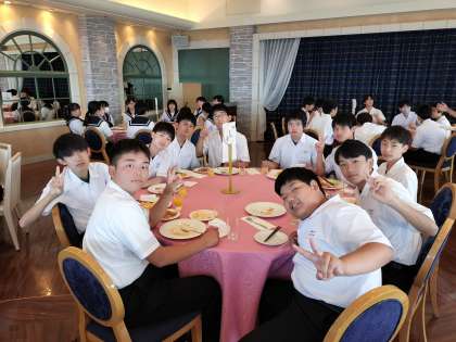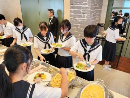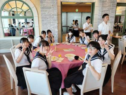 お腹いっぱい、朝食をとりました。いよいよ、この後、班別研修です。自分たちで考えたプランで、東京での「新発見」をしてきます。