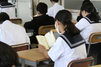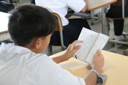 朝の読書【1年生】 公開日 2024/06/12 更新日 2024/06/12 1年生 今日も学校は1年生だけです。 (職場体験で事業所が休みの2年生も数名いますが) いつもに比べ、人数が少ないので学校は少し静かです。 そんな静かな朝、1年生は本の世界に没入しています。教師も一緒に読書をしています。どんな物語の世界を旅しているのでしょうか。この静かな時間を大切にしたいですね。