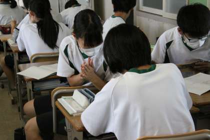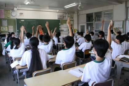 学びあい、理解する【2年生数学科】 公開日 2024/06/19 更新日 2024/06/19 2年生 2年生の数学は「連立方程式」に取り組んでいました。難題であっても、みんなで考え、理解する時間をもつことで、内容の理解も深まります。教えている相手がわかってくれた時に拍手を送る様子も見られました。教師から最後に「分かった人!」と聞かれた時には8割の生徒が元気に手を挙げていました。全員がわかるまで、みんなで学びあっていきましょう!