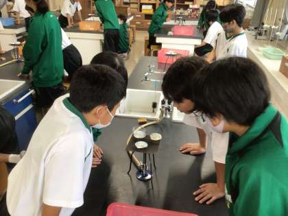 1年生の理科では、「白い粉を区別しよう」という授業が行われていました。前回の授業で、白い粉をどう見分けるかを考えました。今回は、みんなが考えた方法で、実験を行いました。