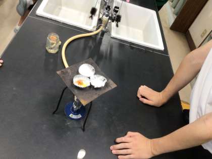 観察したり、水に溶かしたり、火で炙ったり…と様々な方法で確認をしました。特に火で炙ったときには、「綿菓子のような匂いがしてきた…」と、みんなが楽しそうに実験をしていたことが印象的でした。